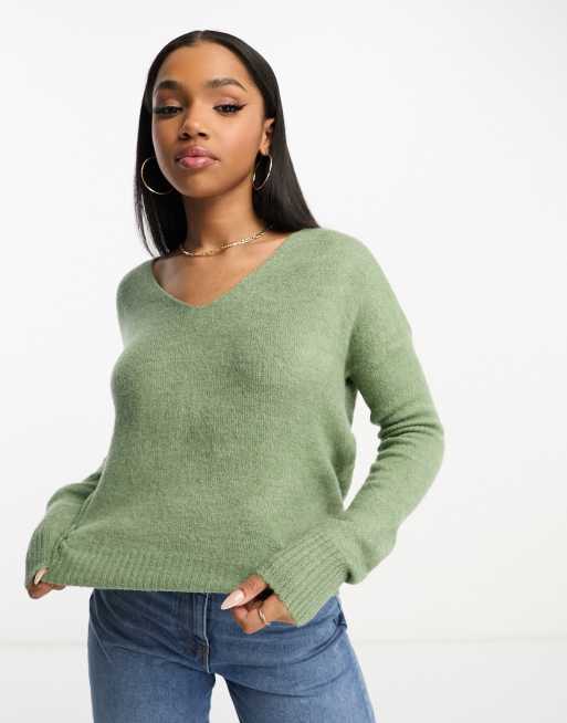 JDY charly v neck fine knit sweater in green ASOS Very well made.