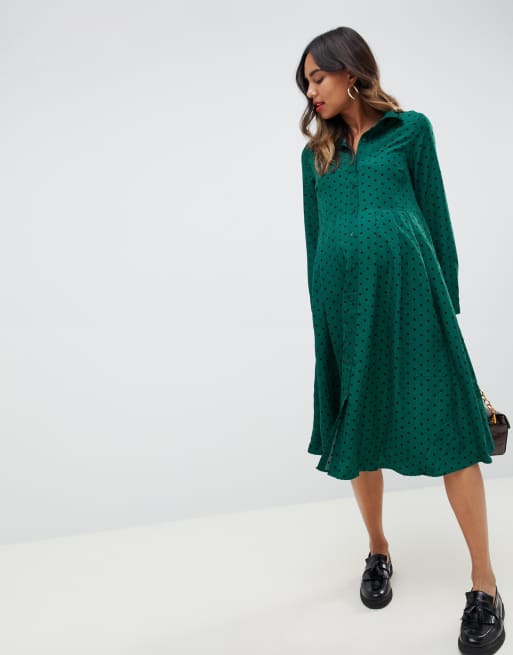 Glamorous Bloom midi shirt dress with pleated skirt in polka dot Very well made.