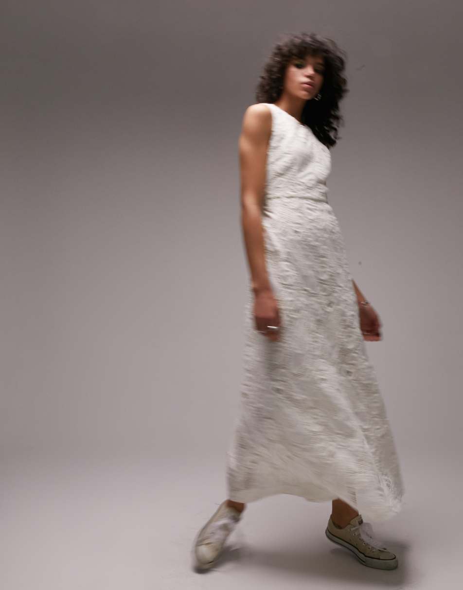 Topshop premium embroidered cut out back maxi dress in ivory www Very well made.