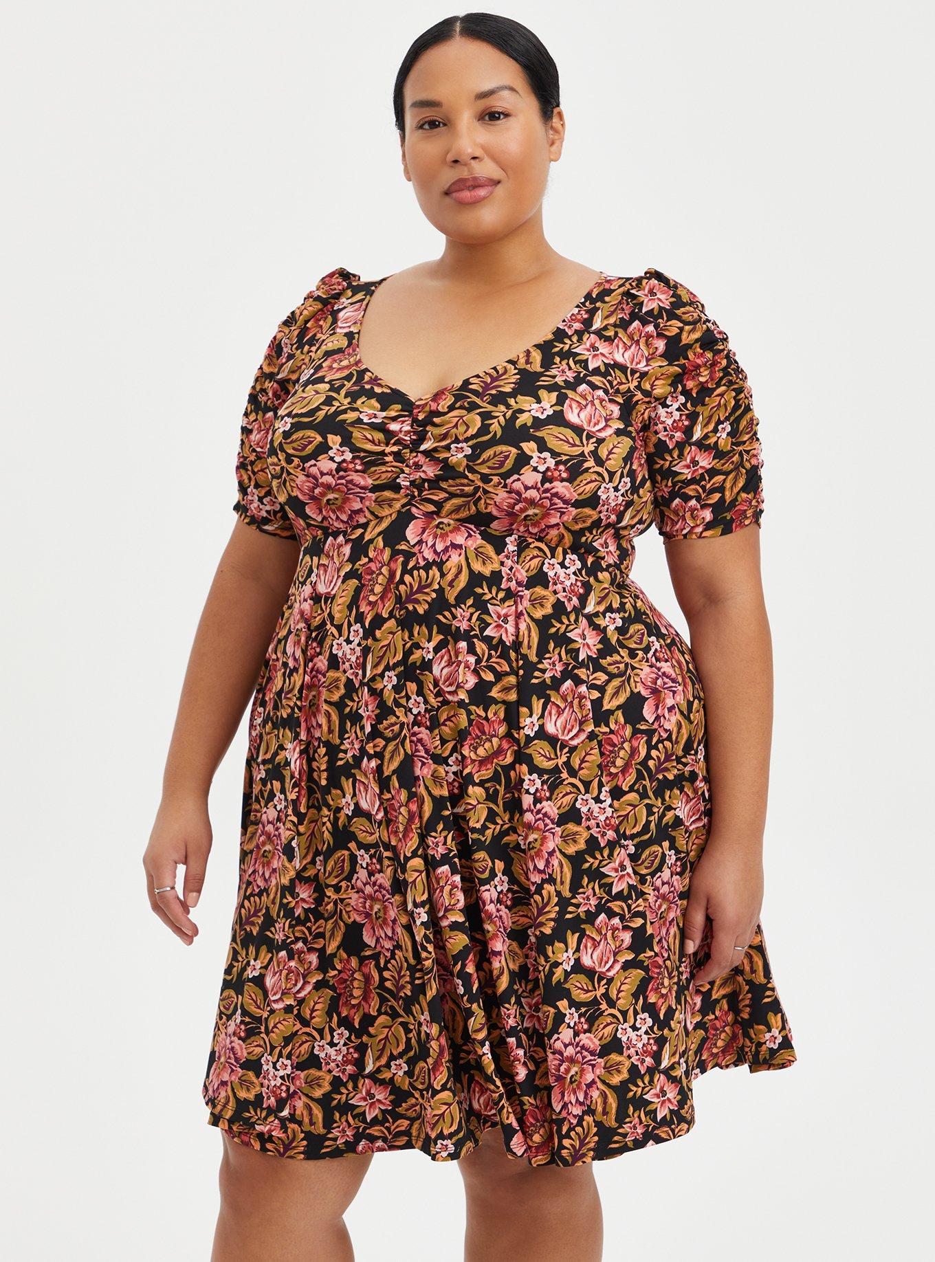 Plus Size Black White Floral Print Flutter Sleeve Dress Torrid Very well made.