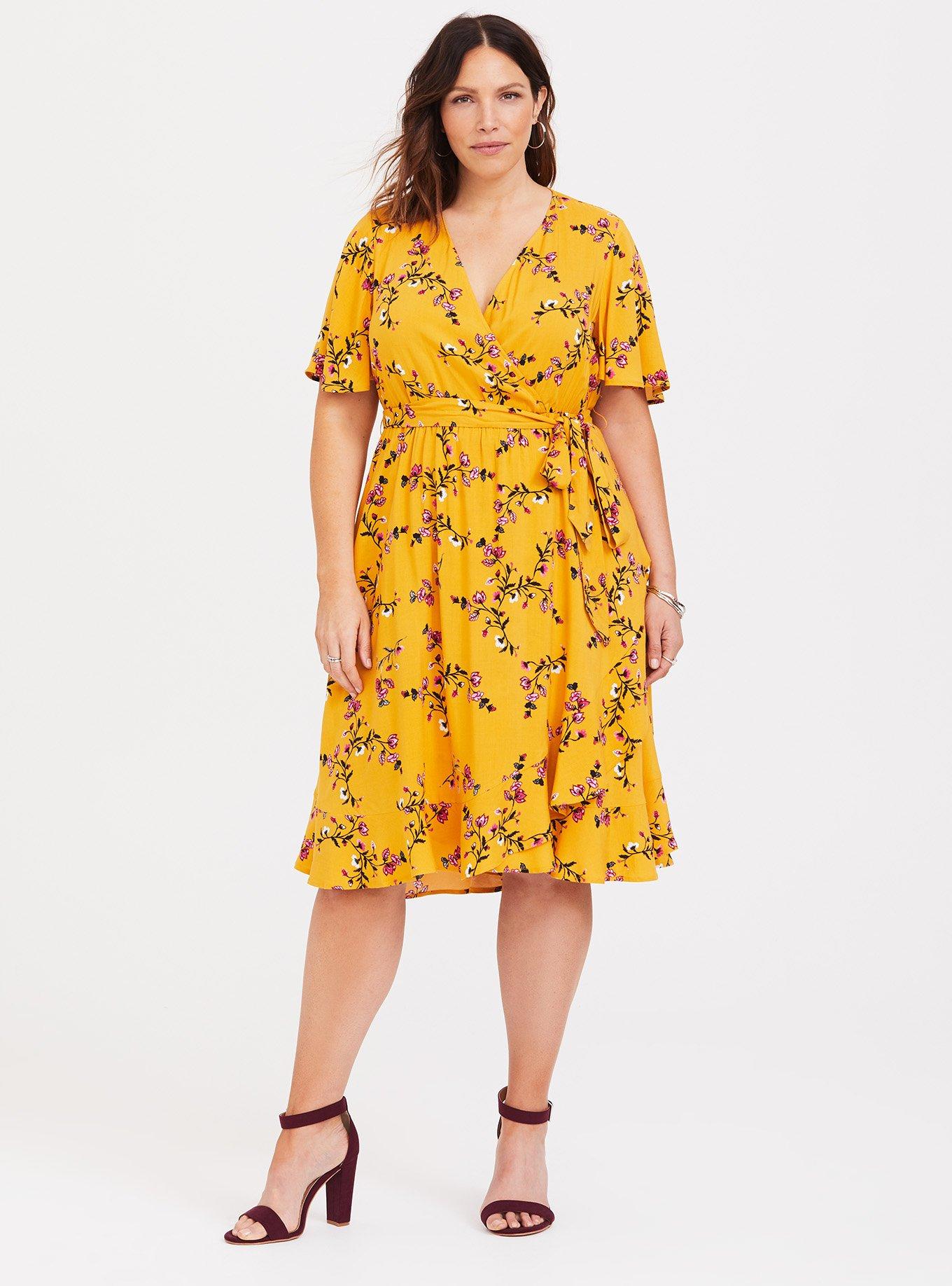 Plus Size Babydoll Dress Stretch Challis Floral Yellow Torrid Very well made.