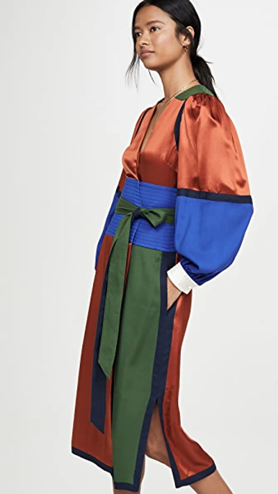 Belted Color block Silk blend Satin And Crepe Wrap Dress In Kola Very well made.