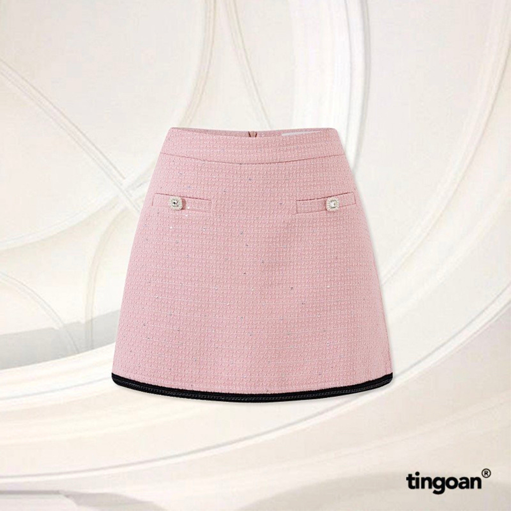 Tingoan High waistband pink tweed SKIRT with CRYSTAL LADY SKIRT Very well made.