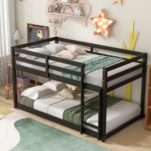 Twin Over Twin Floor Bunk Bed With Ladder And Safety Guardrail Very well made.