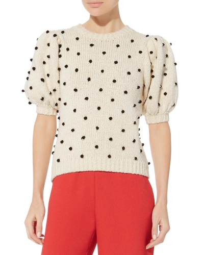 Ulla Johnson Bettine Pompom embellished Cotton Sweater In Cream Very well made.