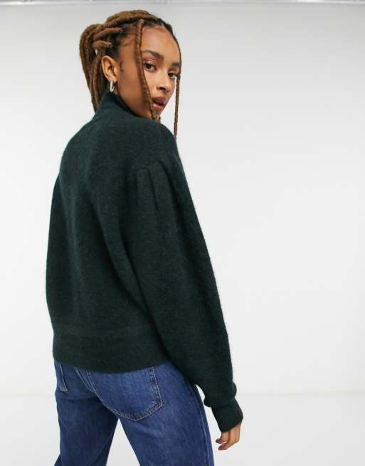 AllSaints Vika high neck jumper with volume sleeves in forest Very well made.