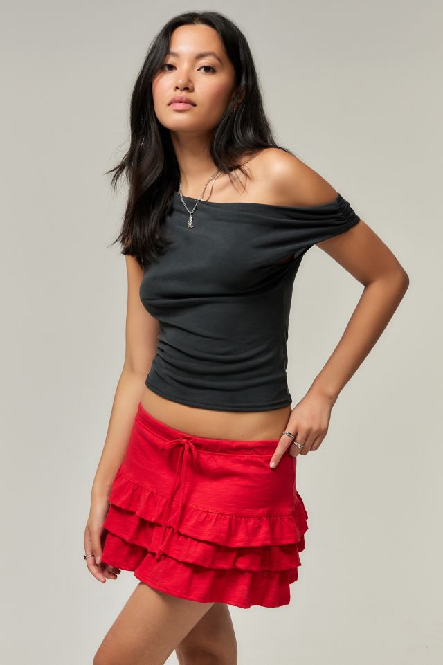 Urban Renewal Remade Jersey Ruffle Mini Skirt Urban Outfitters Very well made.