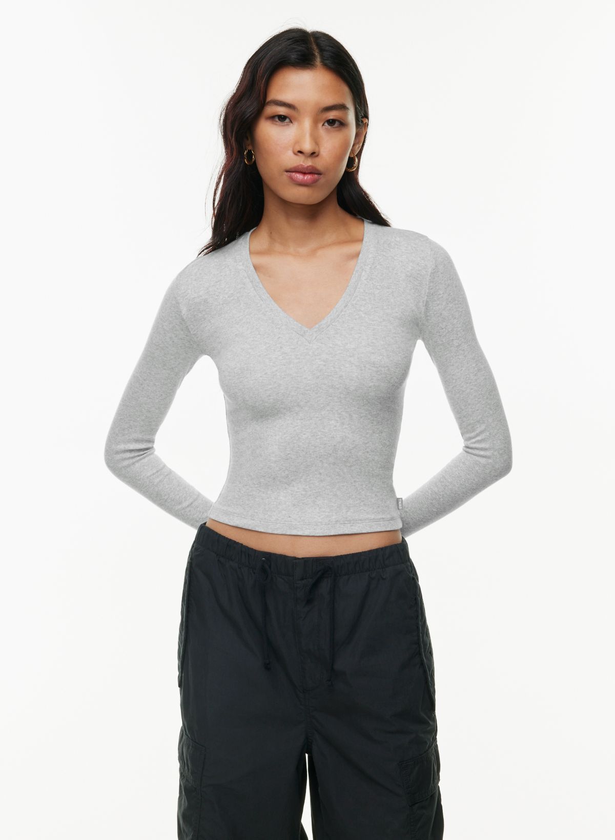 LE3NO Womens Fitted Wrap V Neck Long Sleeve Crop Top with Stretch Very well made.
