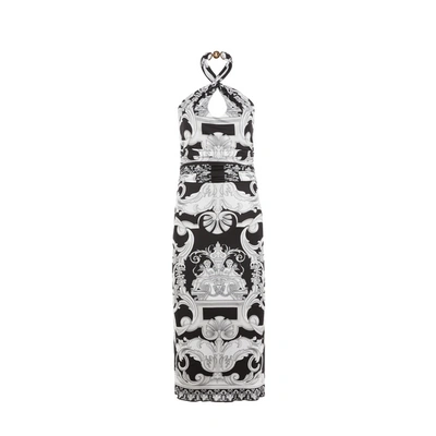 Versace Silver Baroque Printed Halter Body con Midi Dress In Black Very well made.