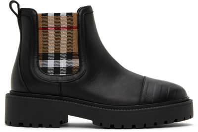 BURBERRY Vintage Check Detail Leather Chelsea Boots Black Very well made.