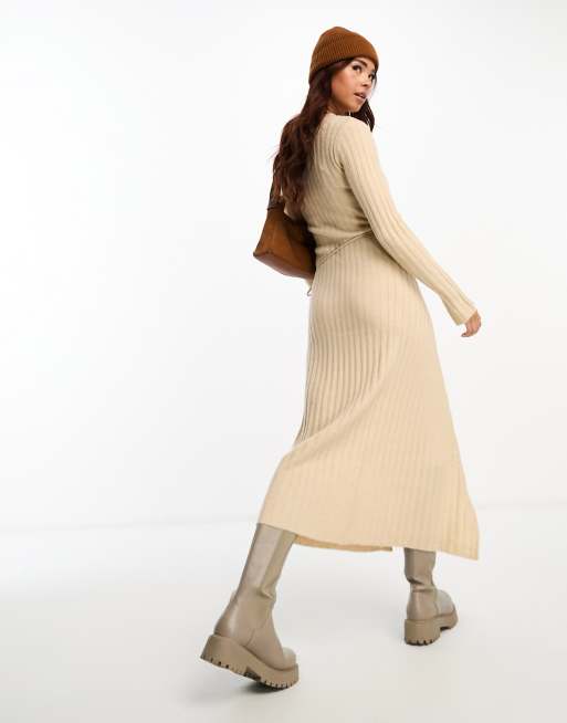 ASOS DESIGN Petite knit midi dress with tie waist in oatmeal Very well made.