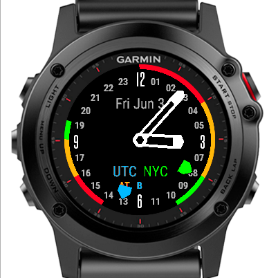 WatchFace 24 hr 2 time zones Showcase Connect IQ Garmin Very well made.