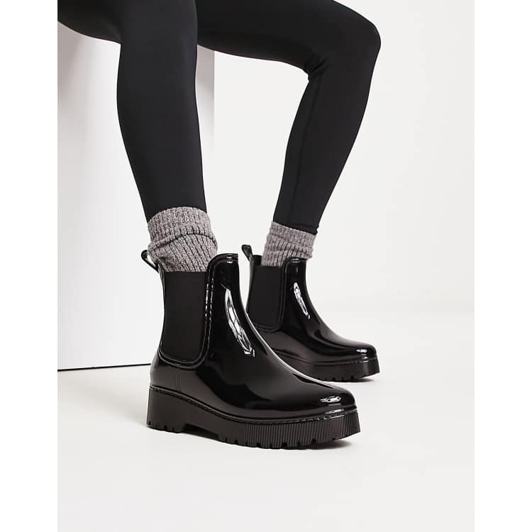 Glamorous chunky ankle rain boots in black patent ASOS Very well made.