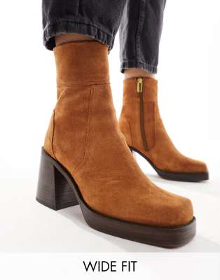 Asos Design Wide Fit Region Suede Mid heel Boots In Tan brown Very well made.