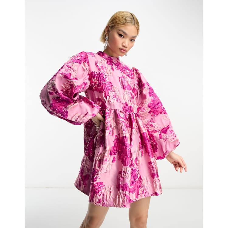 Dream Sister Jane textured jacquard mini dress in pink floral Very well made.