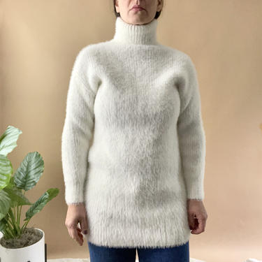 Vintage White Japanese Angora Turtleneck Long Sweater Small Very well made.