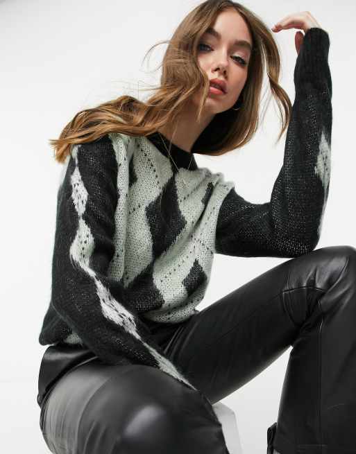 ASOS DESIGN oversized sweater in argyle pattern in black Very well made.