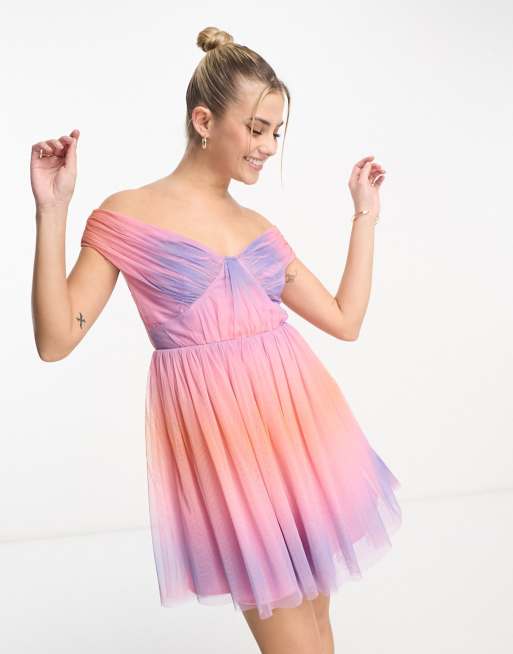 Anaya bardot tulle mini dress in ombre Very well made.