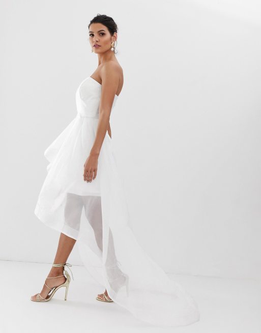 Bariano bridal bandeau organza high low hem maxi dress in white Very well made.