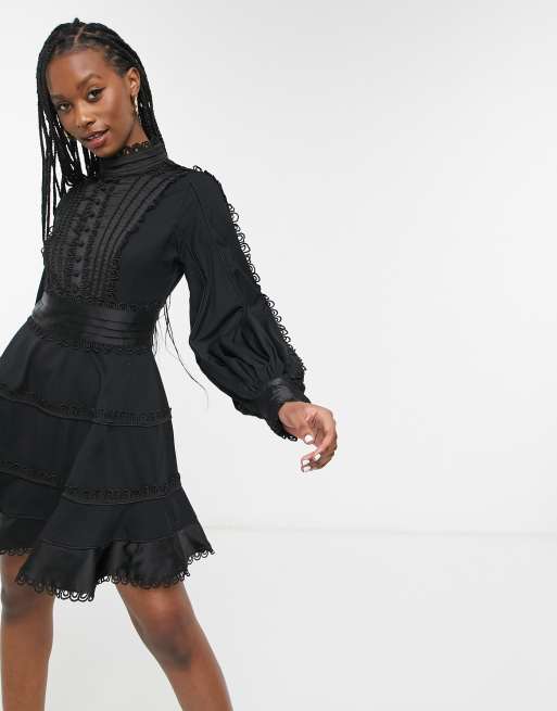 ASOS DESIGN long sleeve tiered smock mini dress in black Very well made.