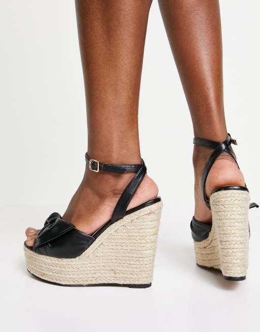 ASOS DESIGN Wide Fit Tier bow espadrille wedges in black Very well made.