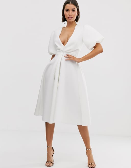 Bubble sleeve twist detail midi prom dress in floral ASOS DESIGN Very well made.
