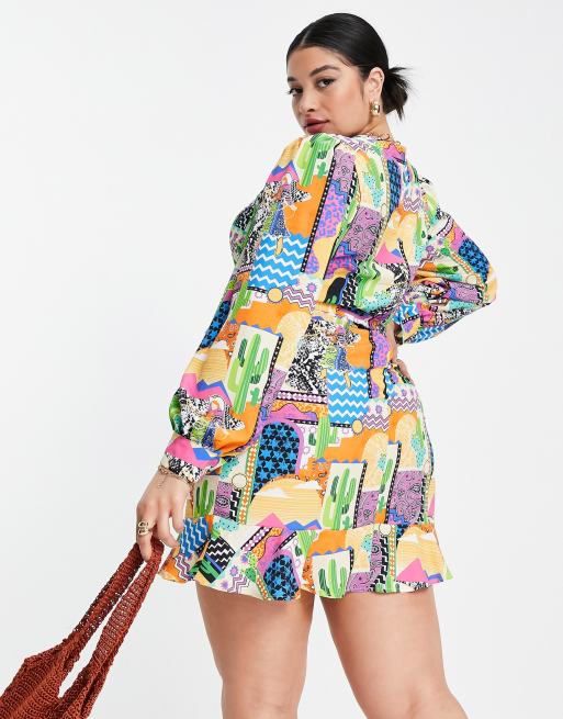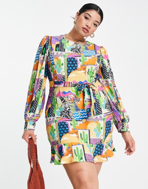 Never Fully Dressed Curve retro cactus print mini dress in multi Very well made.