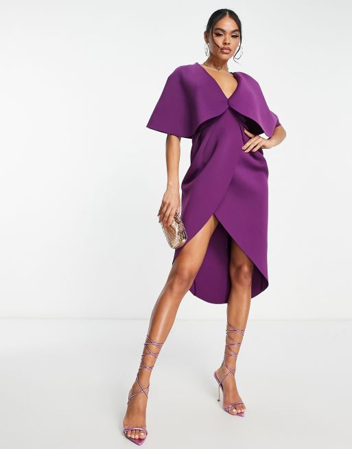 ASOS DESIGN cape detail pleated wrap midi dress in berry Very well made.