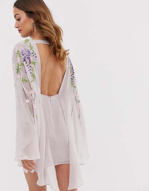 ASOS DESIGN mini cape dress with trailing embroidery Very well made.