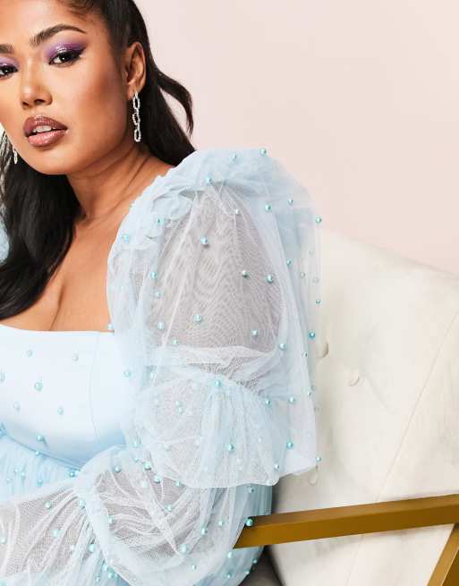 ASOS LUXE Curve tulle baby doll dress with pearl embellishment in Very well made.