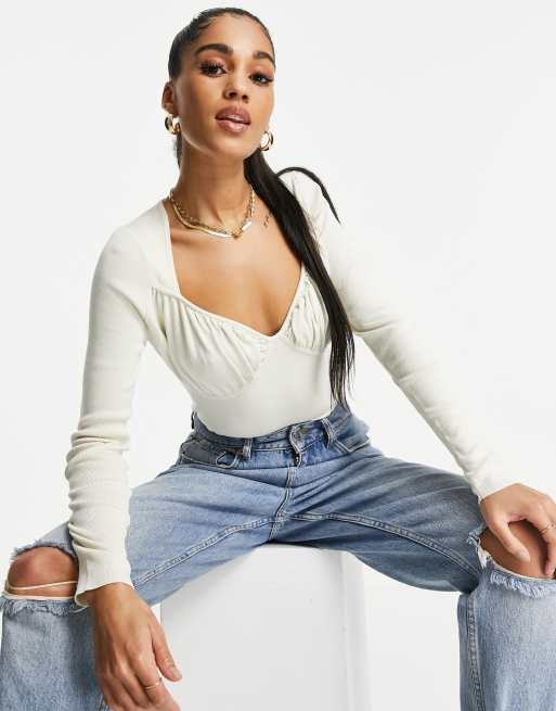 ASOS DESIGN off shoulder jumper in rib in cream Very well made.