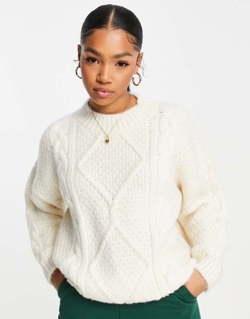 ASOS DESIGN oversized jumper in cable in cream Very well made.