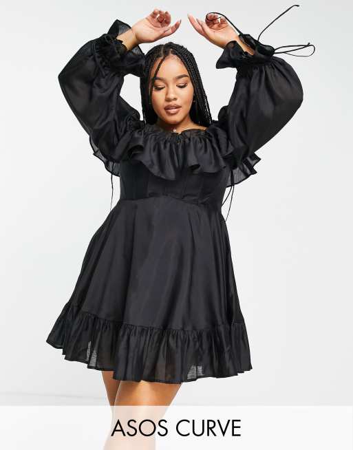 ASOS DESIGN Curve Exclusive off shoulder mini dress with ruffle Very well made.