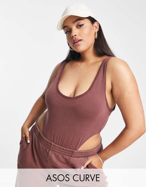 ASOS DESIGN Curve sleeveless washed bodysuit in brown Very well made.