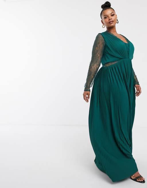 ASOS DESIGN Curve lace and pleat long sleeve maxi dress Very well made.
