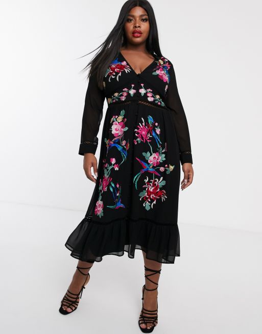 ASOS DESIGN Curve embroidered skater midi dress with lace trims Very well made.
