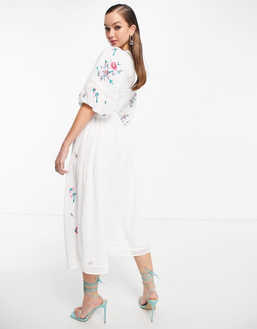 ASOS DESIGN high neck dobby embroidered midi dress with lace trims in white Very well made.