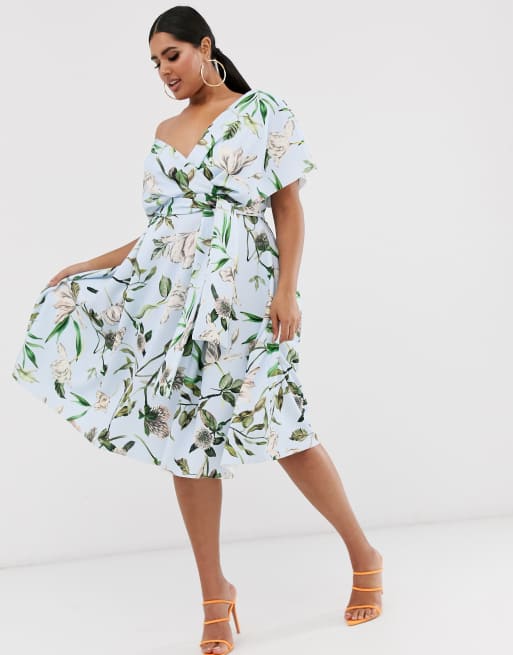 ASOS DESIGN Curve fallen shoulder midi prom dress with tie detail Very well made.