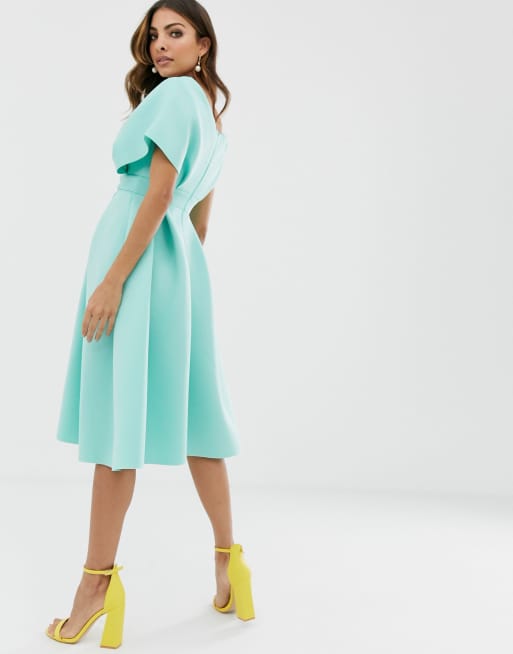 ASOS DESIGN fallen shoulder midi prom dress with tie detail in Very well made.