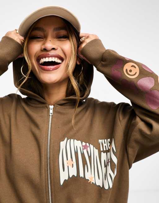 ASOS DESIGN unisex oversized zip thru hoodie in brown with Very well made.