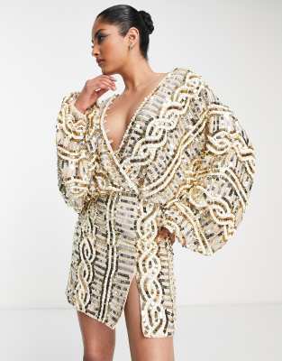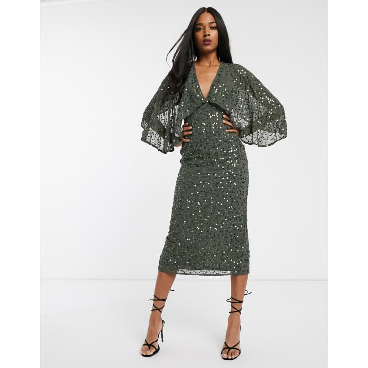 ASOS DESIGN midi dress with cape kimono sleeve in scatter sequin Very well made.