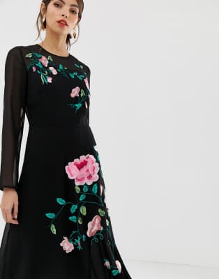ASOS DESIGN midi dress with floral embroidery and long sleeves Very well made.