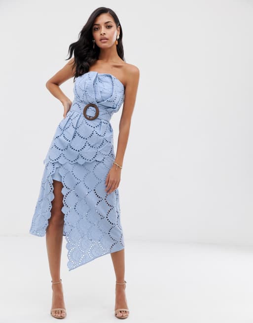 ASOS DESIGN bandeau broderie midi dress with layered skirt and belt buckle Very well made.