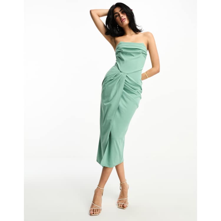 ASOS DESIGN bandeau soft corset midi dress in sage ASOS Very well made.