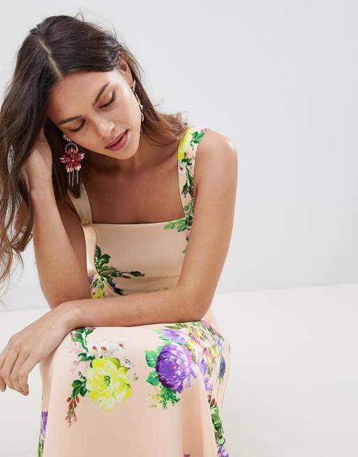 ASOS DESIGN midi floral prom dress with square neck Very well made.
