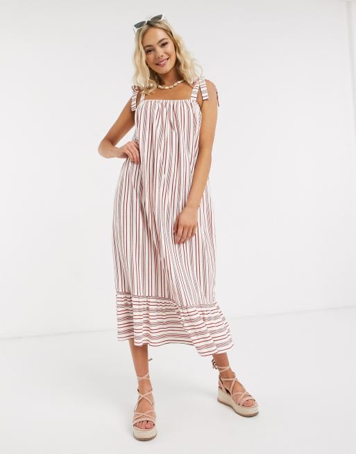 ASOS DESIGN cami midi sundress with pep hem in rust stripe Very well made.