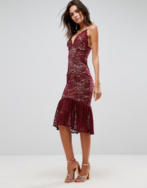 ASOS Lace Plunge Pephem Midi Dress Very well made.