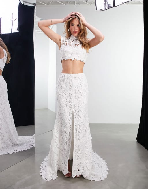 ASOS EDITION Lace Long Sleeve Crop Top Maxi Wedding Dress White Very well made.