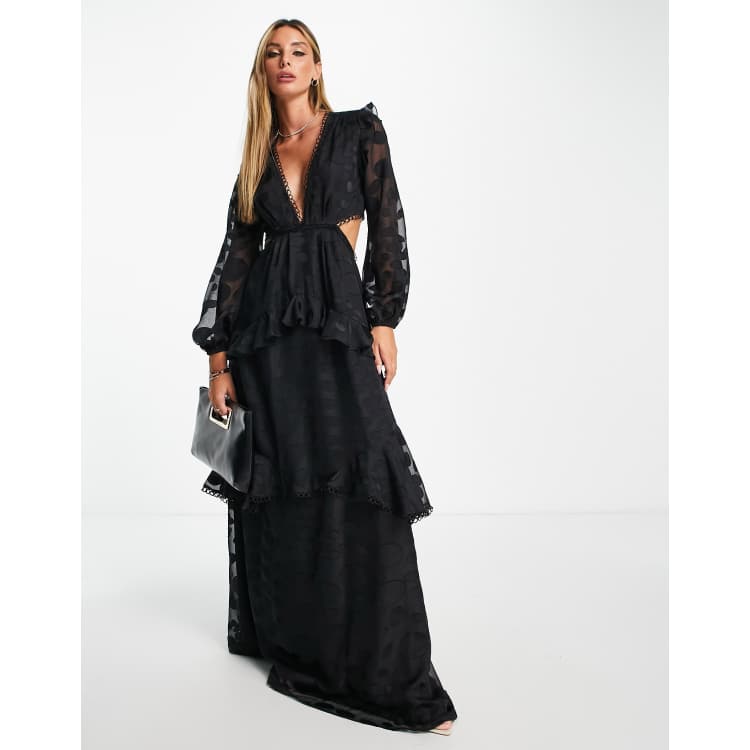 ASOS DESIGN maxi dress with warped spot and circle trim in black Very well made.