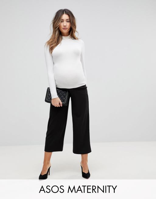 ASOS DESIGN Maternity under the bump cropped black wide leg pants in jersey crepe Very well made.
